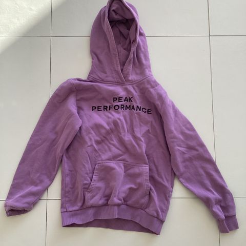 Peak Performancen huppari. Väri vaaleanpunainen/lila. Koko 160, mutta sopii pienemmillekin over size mallina(ollut sellaisena käytössä:) Pientä rispaantumista esim hihan resoreissa yms. Helman resori kuitenkin täysin ehjä.