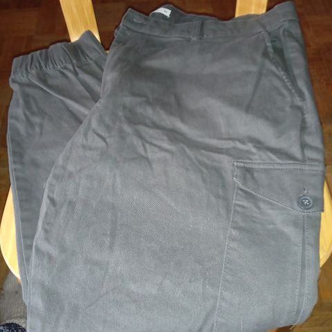 Käyttämättömät, kapealahkeiset housut, jotka ovat miellyttävän pehmeää ja hyvin joustavaa materiaalia. Housuista ei näy läpi. Housujen väri tummansininen ja näissä on pieniä valkoisia palloja. Housuissa on edessä pieni kolikkotasku ja takana kaksi takataskua. Housuissa on 5 kpl vyölenkkejä ja metallinen nappi sekä vetoketju. Housujen vyötärönympärys ilman venytystä 78 cm ja venytettynä 90 cm. Haara korkeus edestä 26 cm. Lahkeen pituus sivulta 95 cm ilman venytystä ja haarasta 75 cm. Lahkeen ympärys ilman venytystä 25 cm ja venytettynä 36 cm. Materiaali 65 % viskoosi, 25 % nylon, 7 % polyesteri ja 3 % elastaania. Pesu 40 astetta.