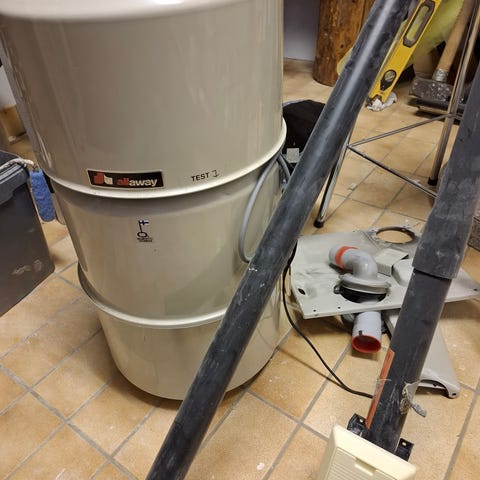 Hyväkuntoinen All a way keskuspölynimuri, keskusyksikkö, malli DV30. Seinäkiinnikkeet saa mukaan, sekä halutessaan myös imurin letkun.