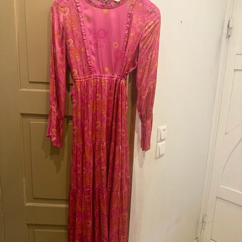 Tämä upea Odd Molly -mekko hurmaa boheemilla eleganssillaan! Harmaa pohjaväri yhdistyy kirjailtuihin pitsihihoihin ja näyttävään medaljonkikuosiin. Vyötäröltä sidottava nauha antaa kauniin siluetin, ja materiaalina on laadukas 100 % puuvilla – mukava ja hengittävä valinta kesäpäiviin tai kerrospukeutumiseen.