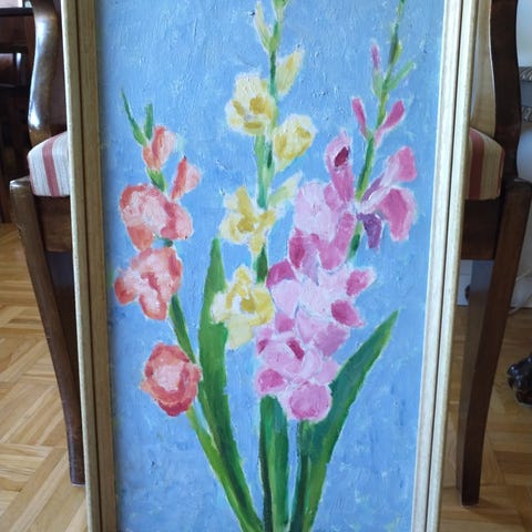 Öljymaalaus – Abstrakti kukka / feministinen huumoritaulu (20×20 cm)