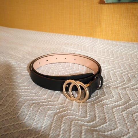 Käytetty vyö,johon on tarttunut kynsilakkaa.Maali ei käytössä näy.
