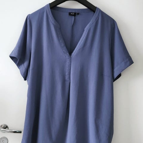 Zizzin sininen pluskoon L (50/52) koon paita, kerran ollut päällä ja kerran pesty, onnistui koneessa purkautua hieman muutamasta kohdasta nuo koristehelmet tosta olkapäältä. Sidoin ne kiinni ettei purkaudu enempää, joku ompelutaitoinen varmaan saisi sen nätisti oikein laitettua.