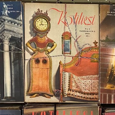 Vanhoja Kotiliesi-lehtiä mummon kokoelmasta, jossa lehtiä kahdeksalta vuosikymmeneltä. Yksittäisten lehtien kunto vaihtelee.
