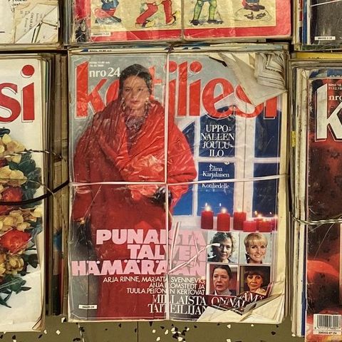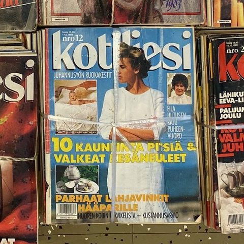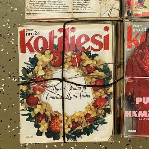 Vanhoja Kotiliesi-lehtiä mummon kokoelmasta, jossa lehtiä kahdeksalta vuosikymmeneltä. Yksittäisten lehtien kunto vaihtelee.