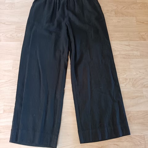 Uudet leveälahkeiset, mustat pellava 55 % + viskoosi 45 % housut, koko 44,