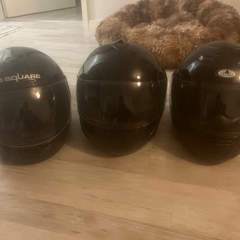 Varasto tyhjennyksestä löytyneet kypärät tekstiileissä hieman ummehtunut haju, pesulla varmaan hoidettavissa