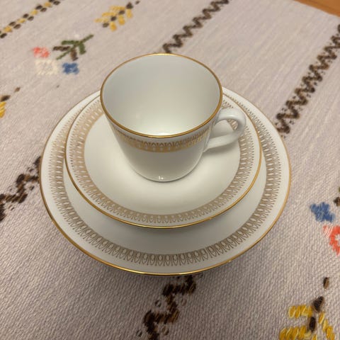 Kahvikupit 11 kpl 16cl + 1 kpl teekuppi 27 cl tasseineen sekä pullalautaset.