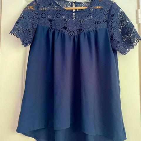 Paristi päällä ollut, kaunis pitsikoristeinen paita. Menee juhlapaitanakin ja mukavan vilpoinen materiaali kesällä. Väljä malli.