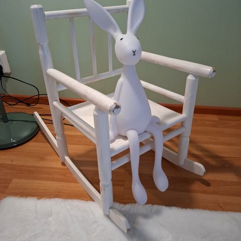 Vuosia nähnyt, mutta siistissä ja ehjässä kunnossa oleva lasten keinutuoli etsii uutta kotia.