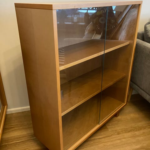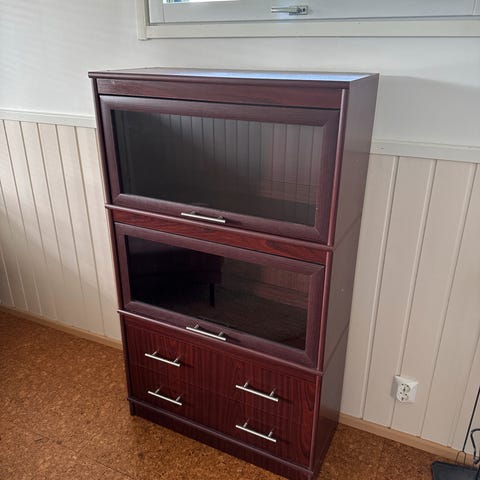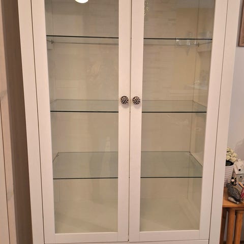 Kaksi erillistä saman sarjan Asko vitriini kaappia. Kapeampi 40 cm ja levempi 80 cm. Ovet on irrotettu mutta helppo kiinnittää. Koivu värinen. Mahtuu kapeaan tilaan ja hyvin kirjoja ja koriste esineitä. Yhteishinta 25€. Levänen.