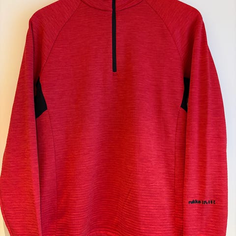 Ulkoiluun ja retkeilyyn tarkoitettu tekninen paita. Selkäpuolella ilma-aukot, joiden alla verkkokangasta. Hieman pesunukkaa.