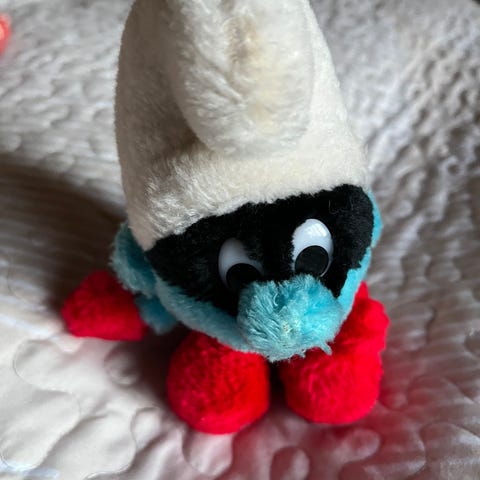 Smurfi 70-luvulta. Käytönjälkiä mutta hyvässä kunnossa.