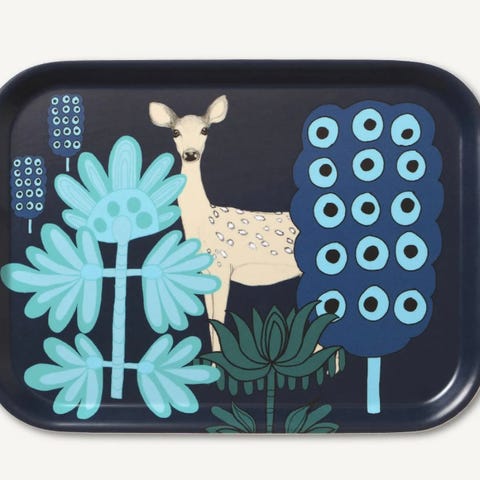 Vanha Marimekon tarjotin, etupuolella jonkin verran naarmuja. Takapuoleltakin jäljet kuvattuina. Halkaisija 49cm.