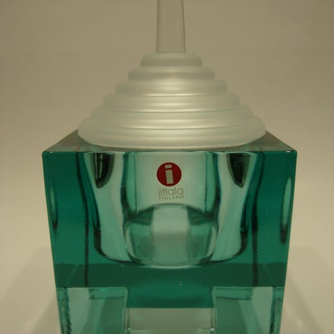 Nuutajärven valmistama Markku Salon suunnittelema kannellinen koboltinsininen Pandoora rasia. Korkeus 11,7 cm, halkaisija 11cm.