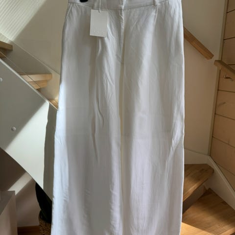 COS-merkin valkoiset pellavahousut, koko 40. Vyötärön ympärys on n.80cm, lahkeen ympärys n.58cm ja housun pituus n.103cm. Käyttämättömät. Hintalappu kiinni. Ovh 79,00€.