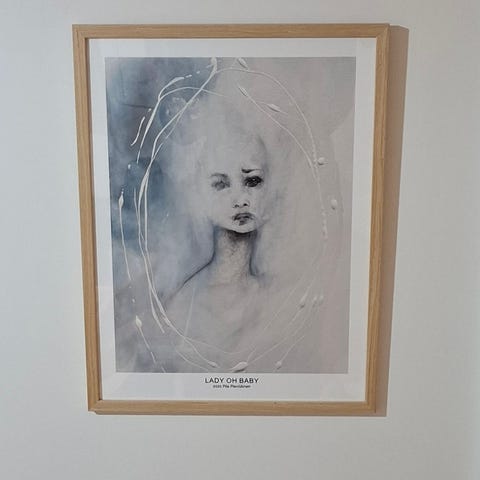 Reeta Ekin signeeraama taidejuliste Habitatin valkoisissa kehyksissä. Juliste 50 x 70 cm, kehystettynä 53 x 73 cm. Erittäin hyvä kunto, kehyksissä vain takana pieniä jälkiä (ks. kuvat).
