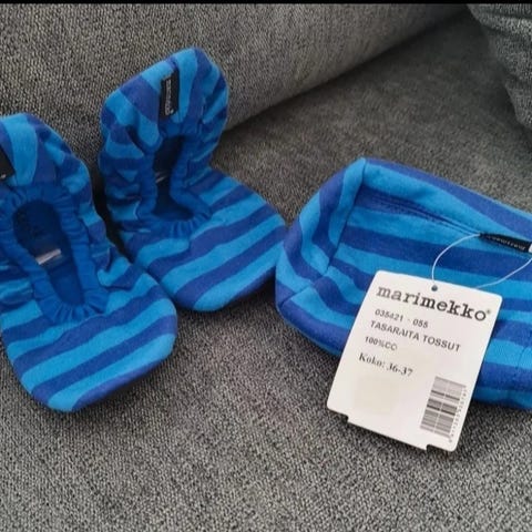Marimekon siniset tasaraita tossut 38-39. Erittäin hyväkuntoiset.