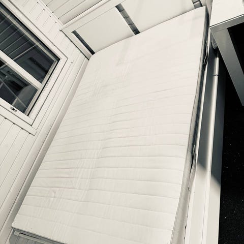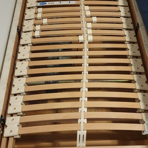 Boknäsiltä ostettu puinen sängynrunko. Patjankoko 180x200. Päädyissä kulumaa ja niistä laitoin kuvia. Sälepohja on itsetehty. Mukaan saa halutessaan itse tehdyn tason joka on meillä ollut sängyn takana yöpöytänä.