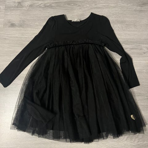 Aivan ihana neuleröyhelömekko merkiltä Pomp de lux koossa 110. Meillä ollut vielä käytössä koossa 116. Siisti ja hyväkuntoinen, kuvatessa huomasin, että edessä keskellä 'vaalea' viiva ja vasemmassa hihassa etupuolella pieni langannousu.