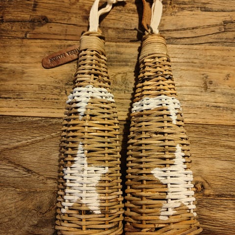 Riviera Maisonin rottinkinen pullon päällinen. Siisti ja ehjä. Korkeus on 33.