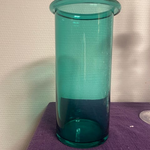 Siniharmaa ehjä ja kaunis Nuutajärven korkea Juno-maljakko. Mitat 120 x 250mm.