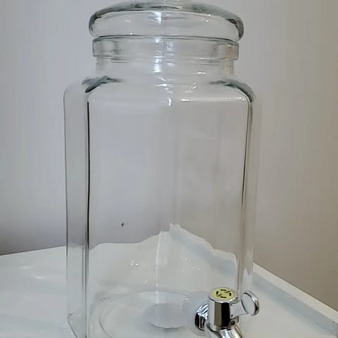 Kaksi juomavesikäytössä ollutta vesikanisteria, n.15l. Sinikorkkinen Plastexin, tässä tiukasti avautuva ja sulkeutuva hana. Punakorkkisessa hana on lähes pöydän pinnassa kiinni. Hanat eivät vuoda.