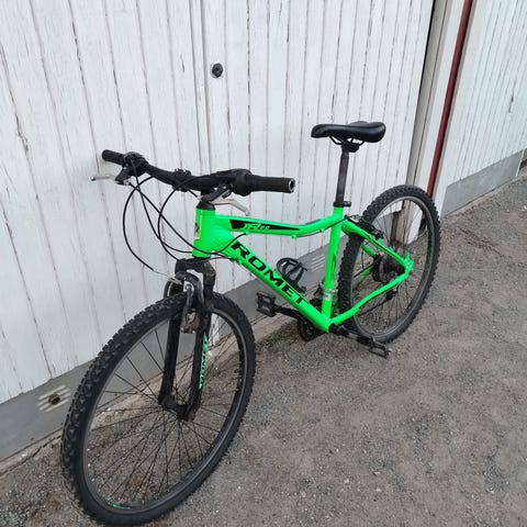 Kuin uusi (5/25) maastopyörä koku L. Polettu asvaltilla 19km.100mm jousto keula minkä voi lukita. Neste jarrut levyillä. Renkaat 2.25. Vaihteet shimano gues. Painoa 13.8kg. Maksoi 630e