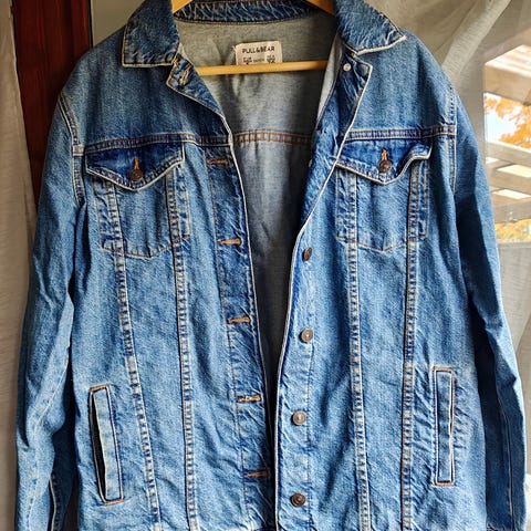 Erittäin hyvä vaaleansini-valkoinen Pull&Bear college takki.Koko XL.Nouto Itä Helsinki tai postitus.