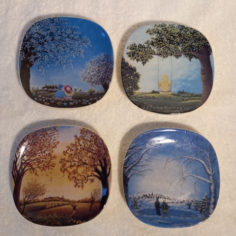 Arabian pieniä seinälautasia 2kpl, koko 12x12 cm. Design: Anita Rantanen-Siewers. Kevät- ja Kesätunnelmia. Uudenveroiset.