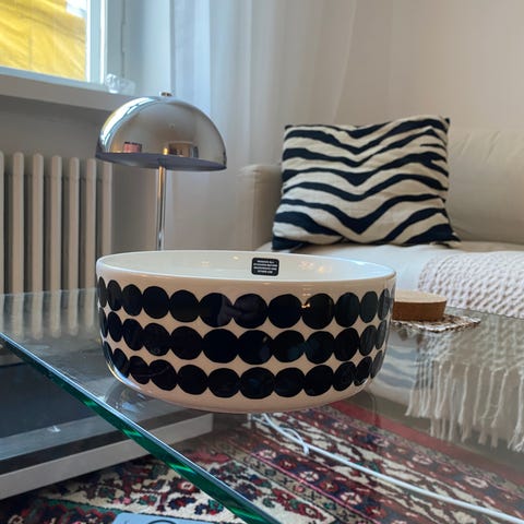 Myydään Marimekon Räsymatto säilytyspurkki. Kannellinen, tilavuus 0,7 ltr. Kuin uutta vastaavassa kunnossa.