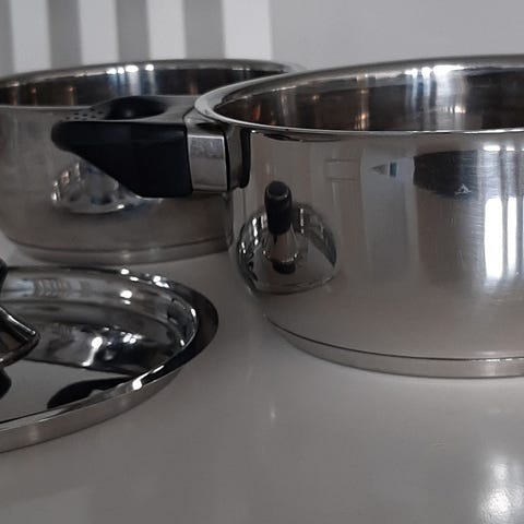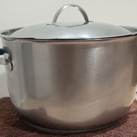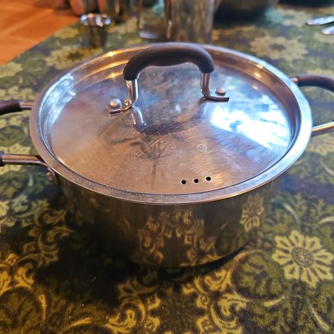 Myydään kuvanmukainen ruostumattomasta teräksestä valmistettu kaadin, 1.5 Litraa, k. 19 cm, h. 13 cm ja 9 cm. OPA 18/8