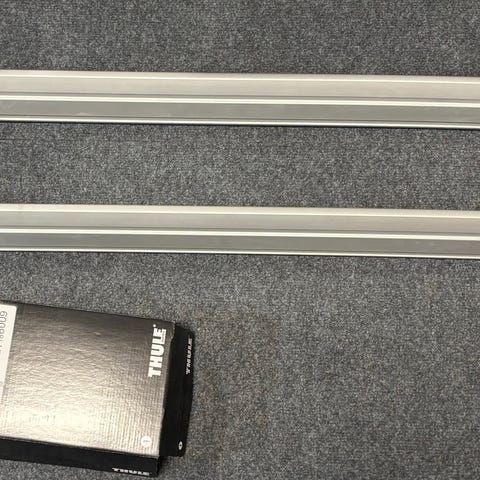 Käyttämätön avaamattomissa tehtaan paketeissa oleva 2015 sedan Passattiin ostettu Thule kattotelinejärjestelmä.