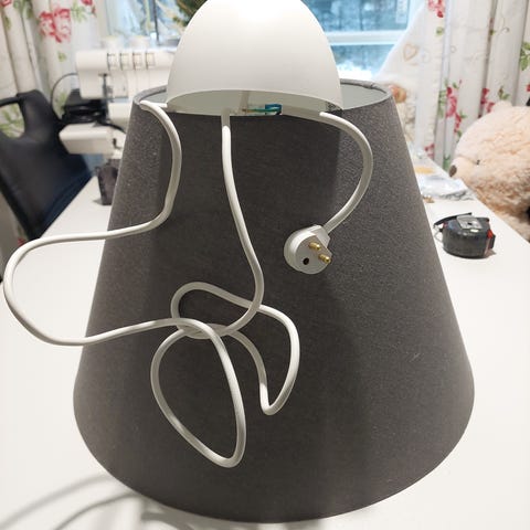Hyväkuntoinen kattovalaisin. Materiaali harmaata paperinarua. Leveys n. 50cm, korkeus n. 60cm. E27 kanta. Poltin mukaan.