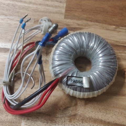 Muuntosähkön toroidi muuntaja. Toisio 2x9V Teho 15VA Hinta 7e Nouto