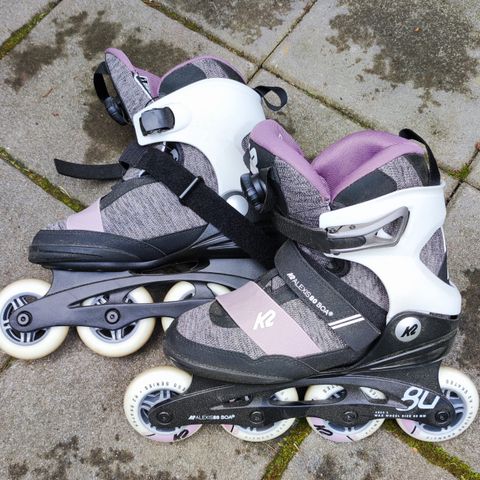 Itselle liian suureksi todetut K2 Fit 80 rullaluistimet nyt kaupan. Luisteltu n.20km. Jarrupalassa täydet pinnat. Koko 44,5