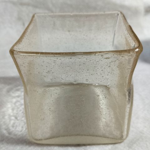 Kotimainen vanhakirkas rakkolasinen maljakko, design Oiva Toikka 70-luku, koko pohja 10,5*5,5 cm ja korkeus 12 cm, ehjä