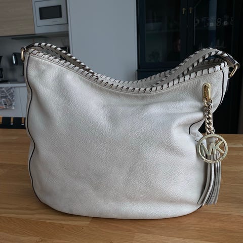 Michael Korsin kullanvärinen olkalaukku MK-logoprintillä, säädettävällä tekstiilisellä olkahihnalla ja kolmella taskulla. Suurimmassa sekä etutaskussa on vetoketju ja takatasku on avoin. Suurimmassa taskussa on Michael Kors logo ja erillinen sisätasku.