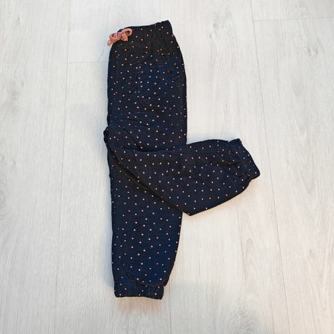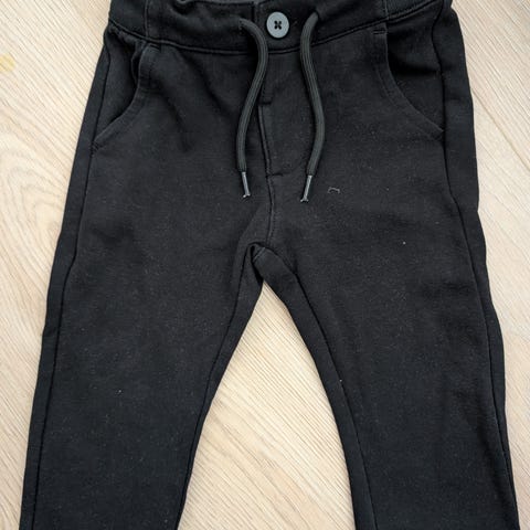 Kappahlin mustat housut, joissa kaksi taskua, vahvistetun polvet ja nyörikiinnitys vyötäröllä. Koko 92 mutta ottaisin käyttöön jo aiemmin esim koossa 86, kuten meillä.