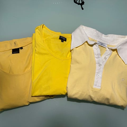 Tyylikäs naisten keltainen kauluspaita.