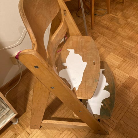 Jykevä painava lastentuoli, ikäisekseen todella loistavakuntoinen. Purettavissa, ruuvattu. Muotoillut tolppapäädyt. Sopii myös kukka-alustaksi.