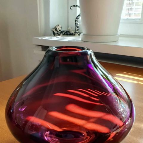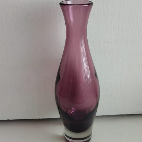 Hienokuntoinen lila nimipäivä maljakko 23cm korkea, selkeä singeeraus