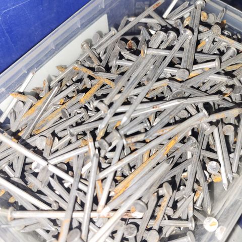 Myydään lankanaula 60 x 2,5. Määrä on noin 1900 kpl (vaa'alla laskettu). Naulojen paino on 5,7kg. Osa nauloista löytyy pintaruostetta.