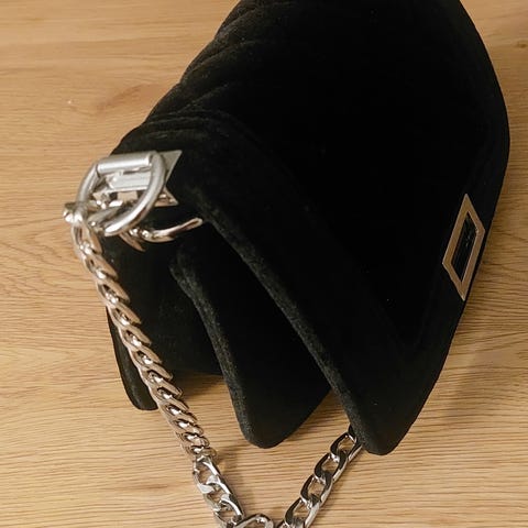 Uusi musta pehmeä samettipintainen iltalaukku kukka koristeella.