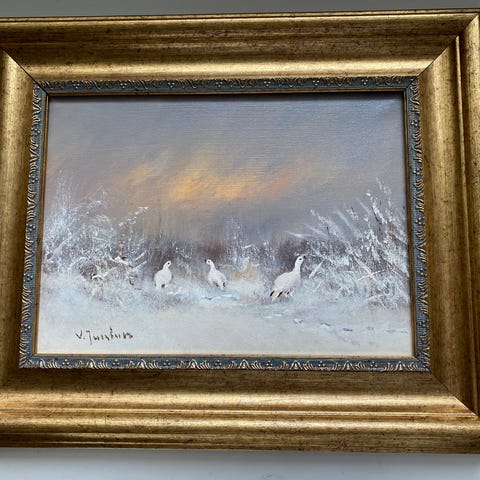 Tunnelmallinen vesivärimaisema. Taulun koko 50x60. Upeat kehykset ehjät ja hyvässä kunnossa. Työn päällä lasi.