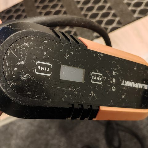 Latauksen teho valittavissa laatikosta 6A--32A välillä.