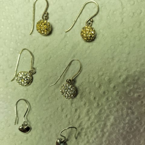 Hopeiset vintage korvakorut. Vihreä ja kirkkaat zirkonit. Toisen lukko hiukan löysä mutta pysyy korvassa. Ehjät.