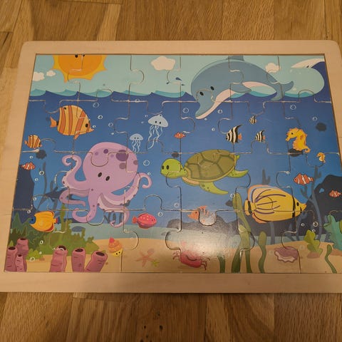 Puisessa kalapalapelissä magneetit ja onki, joilla paloja voi kalastella.
