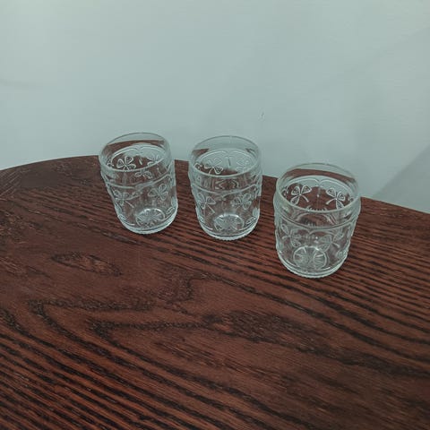 Hyväkuntoiset ehjät lasin. Näitä kolme kappaletta.
