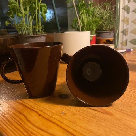 Kaksi kappaletta Arabian Koko-sarjan limenvärisiä vihreitä mukeja. Pientä kulumaa ja käytön jälkeä näkyy, mutta oikein hyvässä kunnossa muuten. Myydään pakettina 12e/2 kpl.